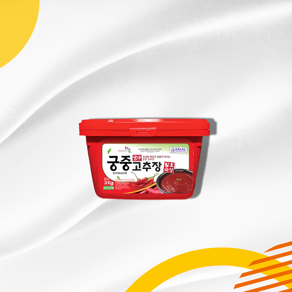 Saus Gungjung Gochujang merupakan saus cabai fermentasi khas Korea yang memiliki aroma dan rasa yang khas terbuat dari bahan-bahan pilihan yang berkualitas. Saus Gungjung Gochujang dapat diaplikasikan pada berbagai olahan makanan seperti: Bibimbap, Cumi Tumis Pedas, Saus Tokpokki dan Kuah Kimchi Jjigae.