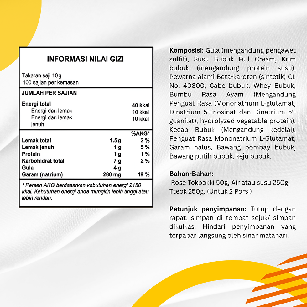 Rose Tokpokki terbuat dari bahan-bahan pilihan berkualitas. Lezatnya kue beras yang lembut dan kenyal Rose Tokpokki jadi andalan seluruh keluarga.