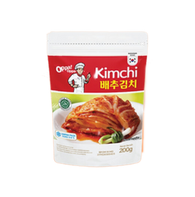 Kimchi dari Oppa Oppa terbuat dari sawi putih dengan lobak yang kualitas terbaik agar tekstur dan rasa sama dengan kimchi asli Korea. Kimchi dari Oppa Oppa dicampur dengan spesial bumbu seperti cabe bubuk, kecap ikan, bawang putih, garam dan bawang bombay. Kimchi sangat cocok untuk dihidangkan langsung dengan segala macam makanan, seperti nasi putih, mie rebus, nasi goreng dan dapat disajikan bahan membuat sup.
