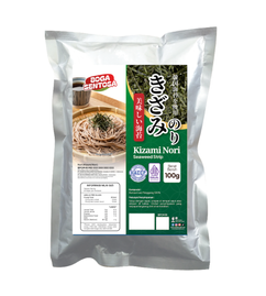Kizami Nori adalah potongan rumput laut kering yang dipotong tipis-tipis, biasanya berbentuk seperti serutan atau helai kecil. Kizami Nori sering digunakan sebagai hiasan atau topping pada berbagai hidangan Jepang, seperti ramen, donburi (nasi dengan lauk di atasnya), soba, atau udon. Potongan nori ini menambah rasa gurih dan memberikan sedikit tekstur renyah pada makanan.